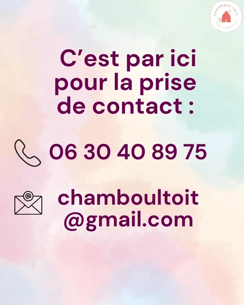 Prise de contact via le formulaire “prendre RDV” dans l'onglet ci-dessus ou par téléphone 06 30 40 89 75.